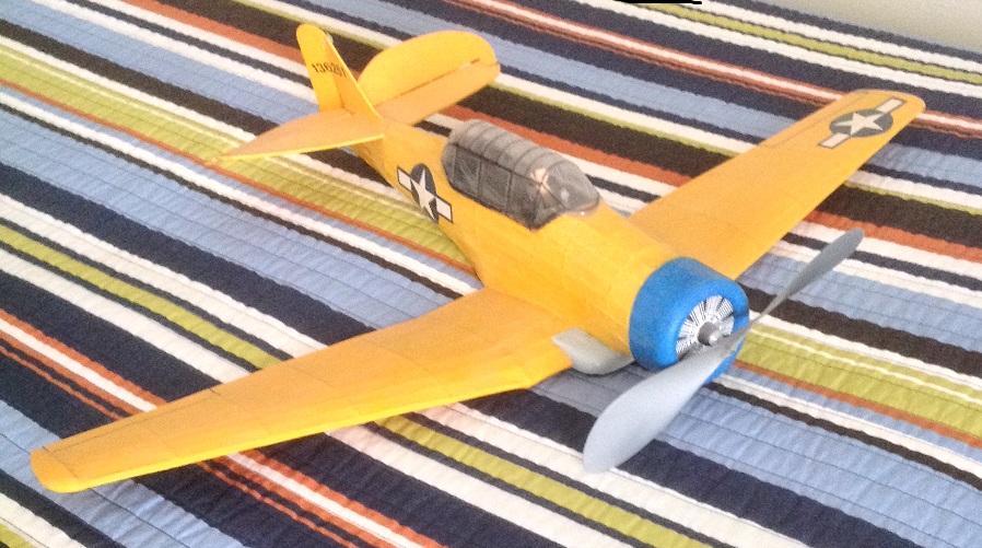 This is a photo of another plane model I made to completion. It has a rubber-band powered propeller and could fly.